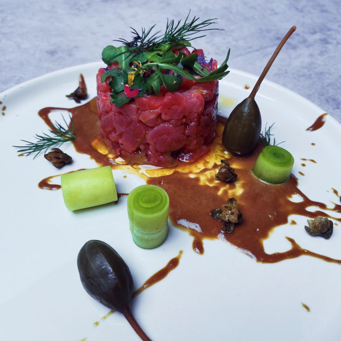 Ein knallermäßiges Beispiel ist das Beef Tatar mit Kürbis-Wasabi-Mayonnaise. Freunde, ich sag es euch. Der helle Wahnsinn. Der Klassiker Beef Tatar bekommt hier ein Upgrade der Extraklasse. Mit einem Hauch Tabasco, einer Sauce aus Soja, Sesam, Ingwer, Limette und Koriander und dazu die Kürbis-Wasabi-Mayonnaise. Die Idee zu dieser Kreation ist einfach brillant. DAS ist Kochkunst!